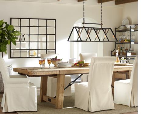 With its ample dining table and room to move around, this is a great space for both everyday meals and entertaining. Every piece here is dramatic yet inviting: the table and ultra comfy chairs offer plenty of elbow room, and the unusual chandelier prompts conversation and gives a flattering glow. The mirror acts as a second window – reflecting sunshine and light from the chandelier, filling the space once the sun goes down.