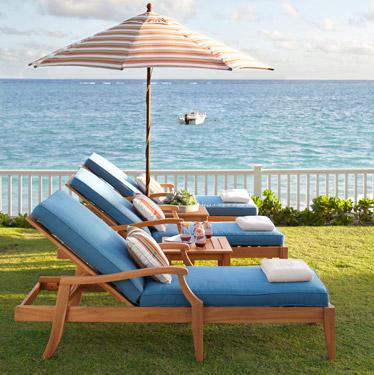 Nothing says summer quite like soaking up the sun and taking in a beautiful view of the water. And because they’re made of incredibly durable, weather-enduring teak, our chaises let you do just that in exceptional comfort – year after year. We’ve added water-resistant pillows in bright, colorful stripes that coordinate with our generously sized umbrella, completing this lounge area with cheerful energy.