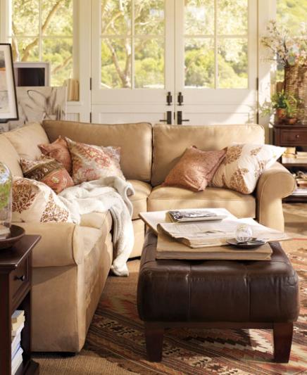 A happy, comfortable place for family and friends to gather is all about lots of inviting seating. The sectional here, with the leather cube beside it, grounds the room's airy atmosphere and inspires cozy retreat – for an evening or just a few moments before a busy day.