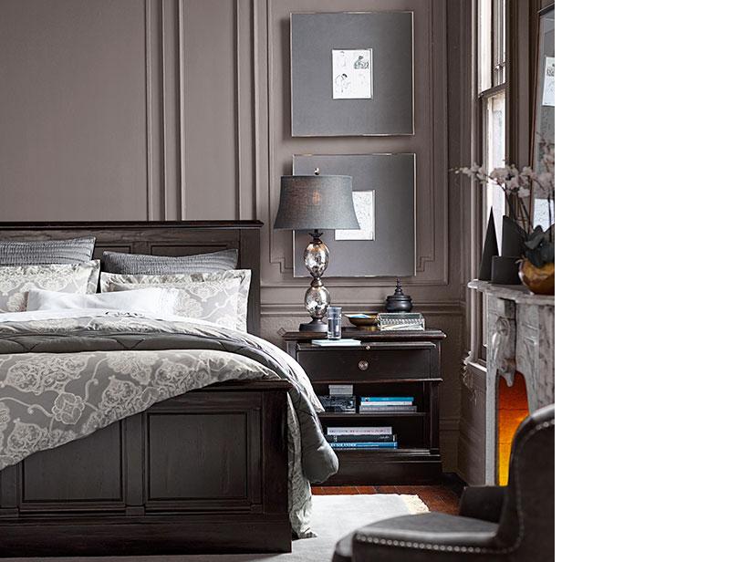 Wrapped in the subtle beauty of texture, this room is a comfortable, soothing retreat. The bed sets the theme for the room’s furnishings and accessories, having a simple design crafted of beautiful wood that calls out to be touched. The bedding, the large wall medallion and the lampshade, are all rich with natural texture. Ample bedside tables and deep under-bed drawers provide storage and keep the room unified and neat.