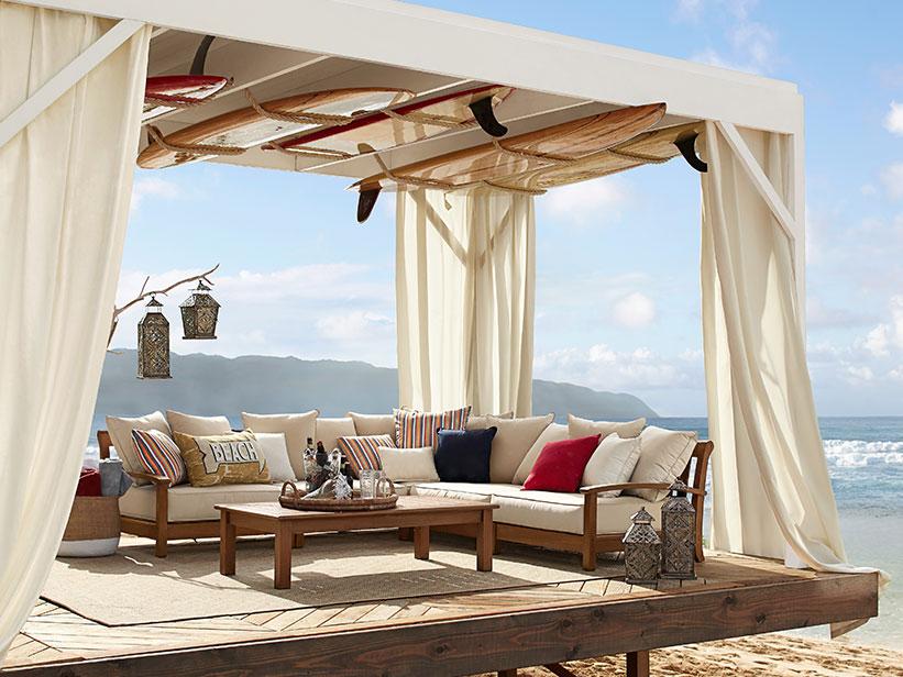 With ample seating, simple accessories and sheer drapes, this deck makes the most of its location. A large sectional gives family and friends room to relax and interact, and drapes allow shade seekers to control sun and breezes. A coffee table, comfy pillows and lanterns pull the look together, making this outdoor space as stylish and functional as any indoor version.